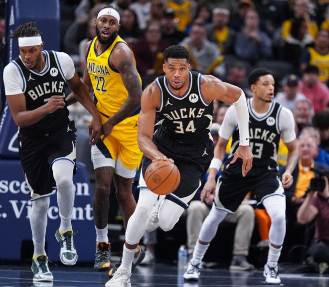 末节字母哥休息时,第二阵容竟然还将分差拉开到10分,扬尼斯得到了足够的休息。但字母哥登场后步行者将分差缩小到5分,扬尼斯在末节的效率值也略有下滑,决胜时刻他突破制造犯规,字母哥为特伦特送出关键助攻,还剩14秒两队平,字母哥中投压哨绝杀了。