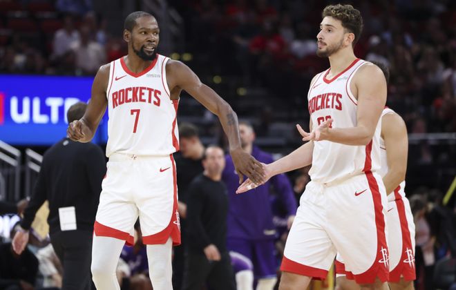NBA季前赛悄然落下大幕,半个月的激烈竞争,对于一些志在夺冠的豪门球队来说,就是来热热手,找找比赛状态。典型的例子就是雷霆和掘金,首发基本都没怎么打,快船这里,哈登常规赛表现比较一般,收官战也休战,毕竟年纪摆在那里,季前赛随便打打就行了。新赛季西部整体格局就是一超多强,除了上述几支球队之外,森林狼和火箭也不容小觑,特别是火箭,季前赛进攻效率+得分+罚球命中率全是联盟第一,杜兰特来了,年轻小伙自信心都提升上来了,三阵都能把东部季后赛级别球队老鹰给打花。